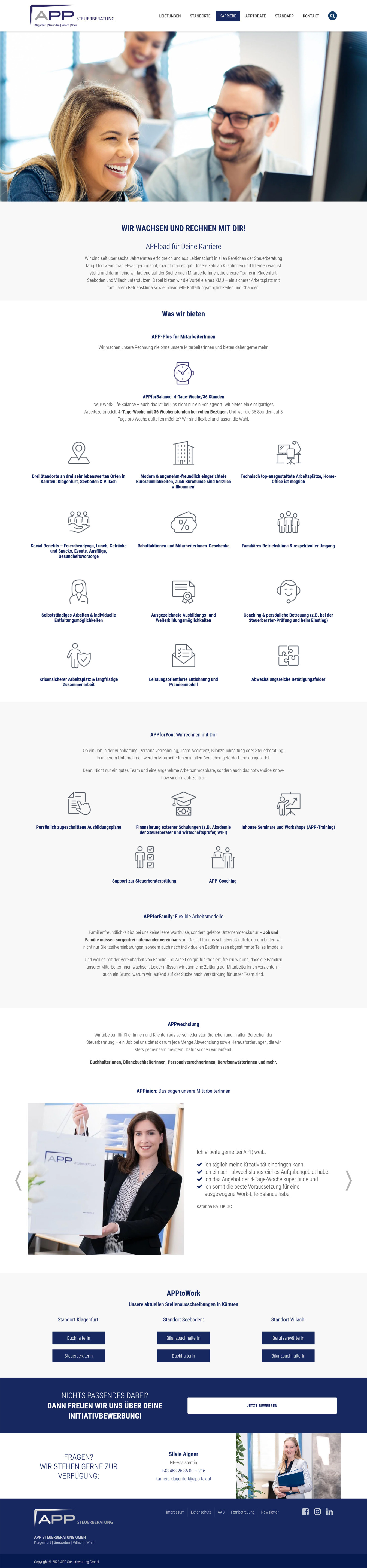 Bei der Konzeption wurden beiden Zielgruppen der Website – (Neu-)Kunden und MitarbeiterInnen berücksichtigt. Deutlich werden sollte auch die langjährige Erfahrung des Unternehmens und gleichzeitig die starke Innovationsbereitschaft. Für den Bereich Karriere wurde ein neues Sujet entwickelt, das nicht nur auf der Website, sondern auch in den anderen Werbemitteln eingesetzt wird. Besonderer Wert wurde daneben auf eine authentische, natürliche Bildsprache gelegt. Umgesetzt wurde die Website im CMS WordPress.