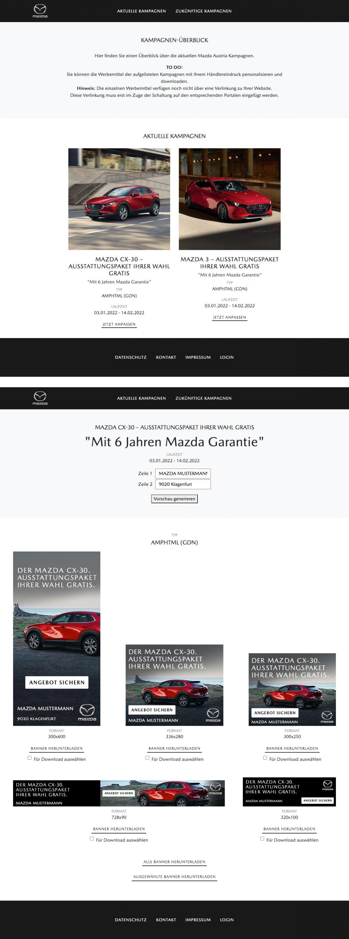 Auf einer eigenen Plattform werden die Online-Werbemittel übersichtlich dargestellt und Mazda-Händler können diese unkompliziert und für sich individualisiert bestellen.